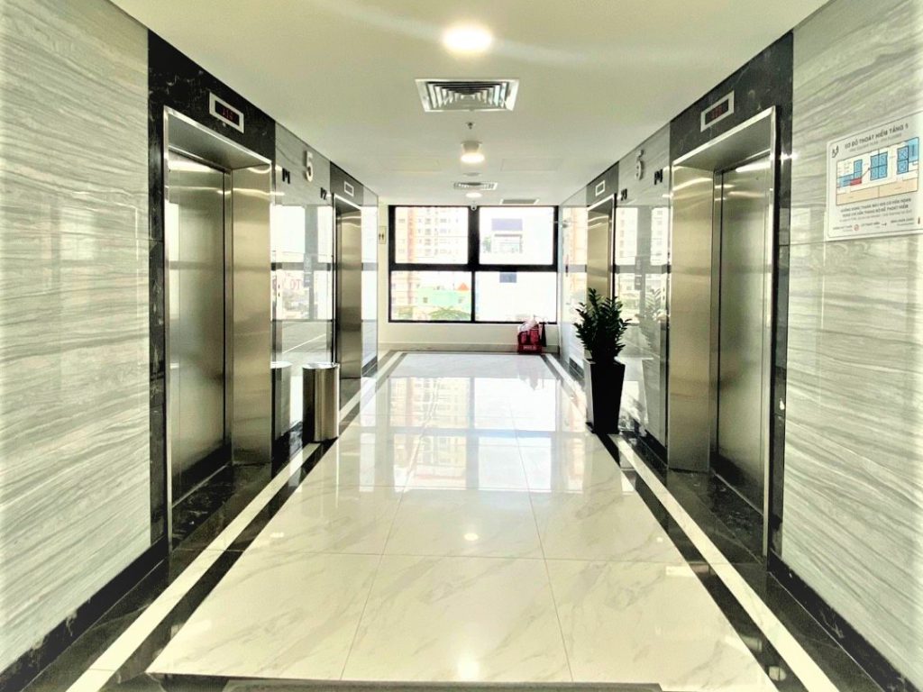 – Hệ thống 7 thang máy Hitachi với sức chứa 18 người, tải trọng 1350kg