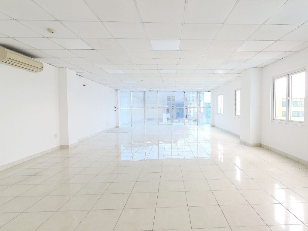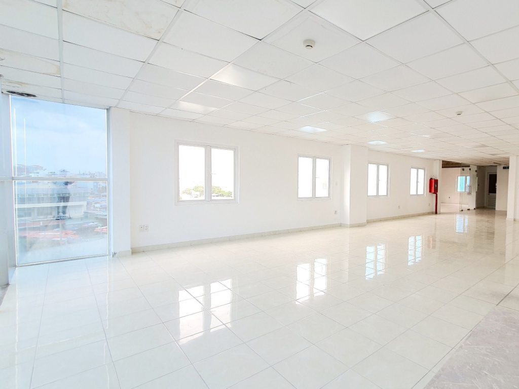Mỗi văn phòng xây dựng trống suốt, được lát gạch men sáng, mặt trước lắp full kính cường lực có view hướng về cầu Bình Lợi và toàn cảnh đường phố.